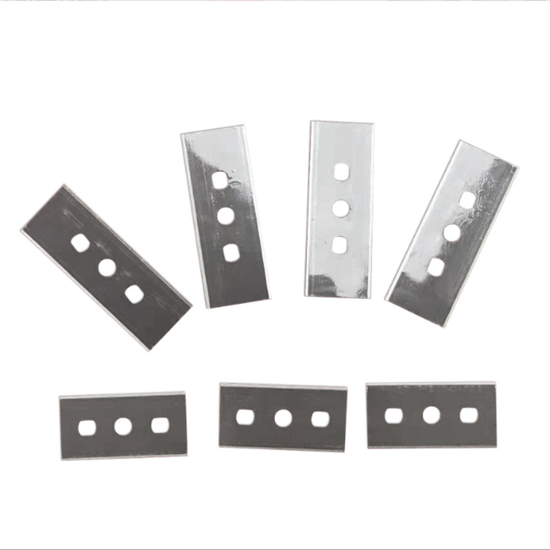 Three-hole blades are widely used in industrial cutting applications for precision cutting of films, tapes, paper, fibers, nonwovens, electronic materials, and medical materials.